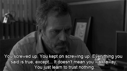 Lo arruinaste. Seguiste arruinándolo. Todo lo que dijiste es verdad, excepto... no significa que te alejes. Aprendiste a no confiar en nada.