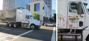 A lo largo de tres días, conductores y peatones fueron agasajados con un vistazo a un camión repleto de miembros y otras partes cuerpos con sangre para promover el programa de televisión.