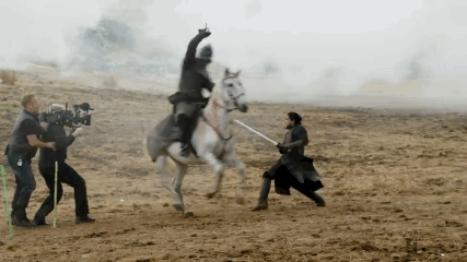 3 Cuando Jon Snow cabalga hacia el rescate de Rickon, se utilizó este brazo controlado a control remoto para filmarlo. Ah, y era sostenido por una camioneta Land Rover: el suelo donde se llevó a cabo la batalla era muy desparejo.