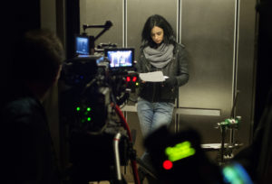 9 Cuando Jessica arroja a un hombre a través del vidrio de Alias Investigation al principio de la serie, la secuencia fue hecha plano a plano según la primer tanda de páginas en el cómic original.
