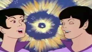 Zan y Jayna activan sus poderes tocando sus manos. Su mascota es un mono espacial llamado Gleek.
