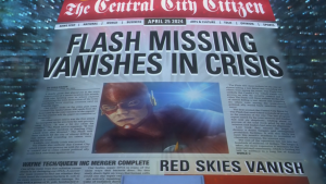 Varias veces vimos a Wells consultando las noticias del futuro. El título del periódico cuenta que Flash desapareció durante una crisis. Eso ocurre en la serie de cómics Crisis on Infinite Earths, cuando Barry muere y se desvanece de esa realidad.