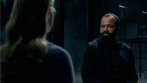 Sí, señores, Bernard fue realizado a imagen y semejanza de Arnold, el amigo y socio de Robert Ford. Excelente la escena donde, además de elegir el nombre de la mano derecha del Doctor, este le explica cómo es que Arnold limpiaba sus lentes y usaba ese momento para pensar los siguientes movimientos.