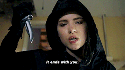 Si bien comparado a los otros sospechosos no hallamos claras evidencias, su aparición es extraña. Quizás nos sorprenda y sea ella Ghostface… Todos pueden ser culpables.