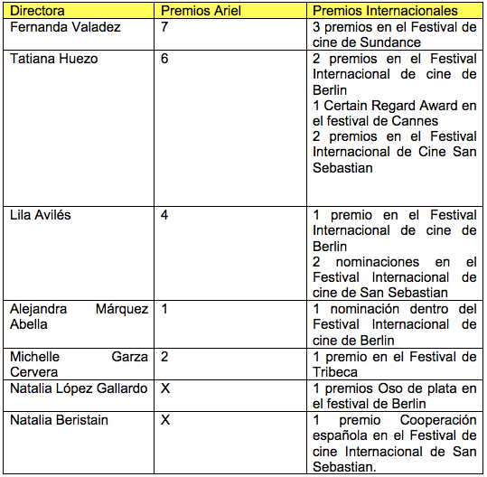 Fuentes: Directores México, NY times, CCC, CQ, IMDB, Filmaffinity, La Crónica, Morelia Film Fest, El Pais.