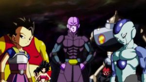 Pero no podemos descuidar lo que está sucediendo: en los capítulos estreno el grupo que representa el universo 7 (Goku y amigos) se enfrenta a otros guerreros en un torneo llamado El Torneo de la Fuerza. Ocho equipos se enfrentarán por salvar su universo, 80 guerreros y sólo uno será el vencedor que podrá asegurarse el bienestar de los suyos ya que los perdedores morirán.