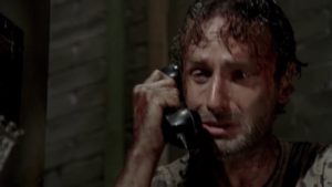 Si mal no recuerdo, desde la muerte de Lori o desde la caída de la prisión que Rick es una máquina de sufrir más allá de estar en pareja con Michonne. Pero momento, no es que solamente sufre y está cabizbajo y bla bla bla: SE LA PASA SUSURRANDO. Sí, queridos lectores: no habla, susurra. A este paso, si siguen mostrando sus penurias, para la temporada 9 va a quedar mudo…