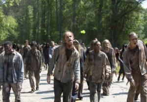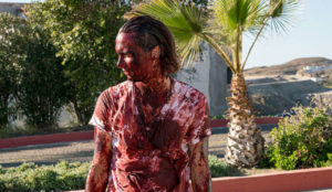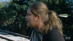 Increíble: se embadurnan las ropas de tripas y sangre de Caminante PERO NO LA CARA. ¿Acaso los Walkers no huelen el sudor humano? Eso fue muy bien resuelto en FTWD ya que Nick se pinta por completo con partes de zombies.