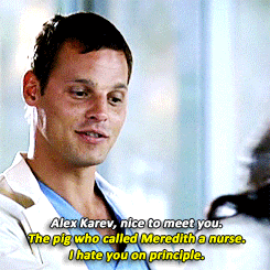 9 Alex está en duda si aceptar la propuesta del Hospital Johns Hopkins. En esta temporada comienza a sentir algo fuerte con Jo. Al principio la relación es tensa, pero él termina confesando su amor. Siempre empieza mal con sus grandes amores, tal como sucedió con Izzie.