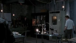 Esta aparece por primera vez en el episodio Sunset, de la tercera parte de BrBa. Gale muestra su máquina, que está construida para perfeccionar el proceso químico para hacer una taza de café. Es un kit elegante, y se parece mucho al de la tercera temporada de The Walking Dead(un momento en el que, por cierto, El Gobernador menciona a un residente llamado Eisenberg, pero eso es ir demasiado lejos tal vez).