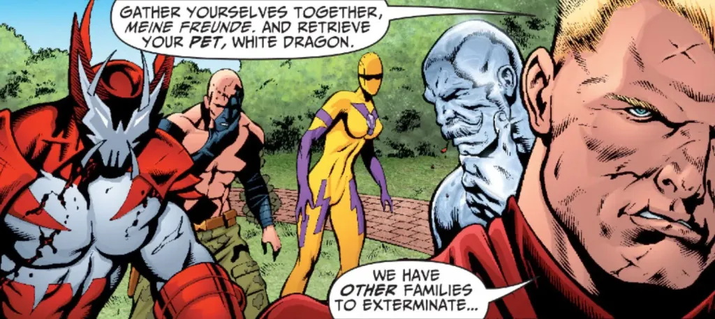 Heller decidió que podría lograr sus objetivos de manera más efectiva si se convertía en un justiciero, así que canalizó su racismo, dejando libres a los criminales blancos por sus crímenes y reclutándolos en el Imperio Ario mientras entregaba a todos los demás a la policía. Después de que The Suicide Squad dañara su reputación, comenzó a usar el nombre White Dragon y una extravagante armadura cuando se unió a una organización llamada Cuarto Reich.
