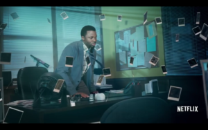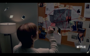 Al puro estilo de un drama criminal, la madre de Hannah tiene un pizarrón lleno de fotos y artículos sobre el caso de su hija. Allí podemos leer los nombres de todos los involucrados. ¿Será que está intentando armar el caso para presentarlo a la corte?