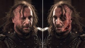 El trabajo con el rostro de Sandor Clegane en la serie de HBO es muy bueno, pero necesita ser todavía más aterrador para asemejarse a los libros. Los detalles más relevantes son la falta de una oreja donde directamente hay un agujero y una herida debajo de su mejilla donde puede verse el hueso.