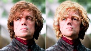 Luego de la Batalla de Blackwater, Tyrion perdió la mitad de su nariz, lo que le da un look mucho más feo que el de Peter. Además, su cabello debería ser mucho más claro y uno de sus ojos de otro color.
