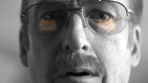 Después de eso la serie da un salto en el tiempo, y nos sitúa en la vida presente de Gene, refugiando en Nebraska, viviendo bajo las sombras, sabiendo que la vida en silencio es lo suyo. Pero sin saber que tras su tiempo en el hospital y la noticia de saber sobre Kim despiertan en él su verdadero ser. La ausencia de color refleja de forma maravillosa el estado de trivialidad al que está condenado, como muerto en vida, como si el color fuese un premio al cual ya no puede acceder. Confirmándose cuando ve su comercial de Better Call Saul, en el reflejo de sus lentes, lo ve a color, confirmando lo que ha perdido.