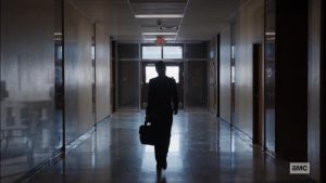Prueba de esto es el momento en que vemos a Walter y Jesse secuestrando a Saul, a quien amenazan con aventarlo a un hoyo en medio del desierto, secuencia que ya todos los que vimos Breaking Bad conocemos, esta hace una transición perfecta donde se muestra a Gene acostado en su cama, donde el difuminado nos deja ver que su cuerpo estaba al tamaño del hoyo y a la vez remarca que desde ese momento su destino era morir en vida.