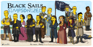 Otra vez Adrien Noterdaen, aka ADN, el un artista plástico belga que tiene como pasión: pensar a todo el mundo de color amarillo, o sea, como si fuera un entramado de Los Simpson, se hace presente con una intervención: esta vez reinterpreta a los personajes de Black Sails.