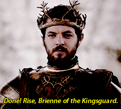 1 La conocimos cuando venció a Loras Tyrell en el torneo de Puenteamargo. Renly Baratheon (quien se había proclamado Rey) la nombra Caballero de su Guardia.