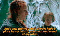 14 Sansa escapa y Brienne aparece al rescate salvándola del ejército de los Bolton: le entrega su espada, tal como lo hizo con su madre, y la lleva hacia El Muro para que se reúna con Jon.