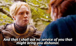 Brienne de Tarth… ¿Quién no la ama? Llegó al show demostrando que una mujer puede blandir la espada de la misma manera que los grandes caballeros y que las promesas y juramentos se cumplen.