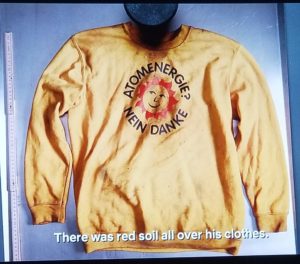 En la camiseta de uno de los niños muertos se puede leer “Atomkraft, nein danke”, el eslogan del movimiento antinuclear alemán en la década de 1980.