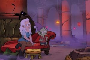 Fiel a su estilo, Groening introduce diversas referencias a la cultura pop, y, como no podría ser de otra manera, sus icónicas series animadas también lugar. Tanto Los Simpson como Futurama han dicho presente en la primera temporada de Disenchantment, ya sea a través de pequeños easter eggs o similitudes entre personajes y situaciones.