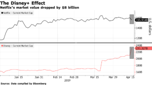 Las acciones de Netflix cayeron un 5% en el mercado internacional lo que significó una perdida millonaria para la empresa ubicada en Los Gatos, California. De acuerdo al sitio Bloomberg, esta caída en números monetarios se traduce en 8,000 millones de dólares. Al contrario de Disney, que generó confianza en el mercado y sumo al valor de la empresa $235,000 millones de dólares.