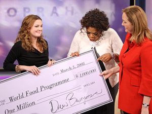 14 Vimos a la actriz en el show de Oprah Winfrey otorgando 1 millón de dólares a la Fundación de Alimentación del Mundo de la ONU.