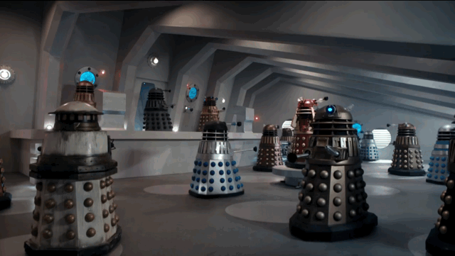 Los Daleks son seres mutantes que viven en una coraza de metal y tienen una única misión: Exterminar al Doctor (como ellos mismos lo anuncian en cada aparición). ¿Y pueden creer que ellos no estaban en los planes de los productores originales? Pero por una cuestión de tiempo, tuvieron que aceptar que aparezcan en la serie y el resto es historia. Son los favoritos de los fans.