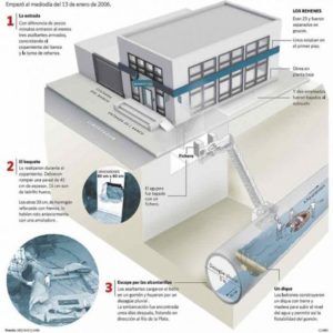 El asalto fue cuidadosamente planificado, utilizaron diversas técnicas criminales e inclusive debieron reversionar instrumentos mecánicos por las adversidades que se les presentaron durante la misión. Diseñaron específicamente un túnel que les permitió ingresar al banco, construyeron pasajes y diques para habitar las alcantarillas y preparar el camino de la fuga, usaron una compleja herramienta mecánica para abrir las cajas de seguridad y hasta la negociación para distraer a las tropas especiales fue guionada. Nada fue improvisado. Para el líder, ese túnel semicircular que construyeron para llegar al banco y para escapar fue su segunda casa durante meses. Conocía sus sonidos, sus paredes, el pulso del agua, todo. Hasta llegó a alimentar a una rata que veía siempre cuando trabajaban para llegar al Banco Río. La entrada a ese túnel fue hecha desde un desagüe pluvial que va hacia el río. El mismo tiene un diámetro de 15 metros, es decir que podría caber un camión sin problemas, y el agua les llegaba más abajo de la cintura.