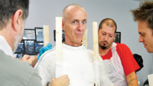 Para su labor en Stranger Things, estaba metido dentro de un enorme traje que fue creado a partir de técnicas de make-up por el estudio de efectos especiales Spectral Motion. ¡La criatura mide más de dos metros! El actor usó zapatillas que lo elevaban y también zancos para los momentos en que permanecía estático.