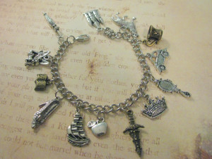 De todo el merchandising que he visto sobre Once Upon a Time, lo que siempre más me ha llamado la atención es la cantidad de accesorios disponibles. Anillos, colgantes, pins… Y en este caso, brazaletes. Aunque parecen repetirse, la realidad es que en cada uno de ellos vemos representados a los cientos de objetos, elementos y personajes que inundan la pantalla en cada episodio del show de ABC.
