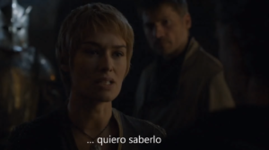 Si alguien planea hacer de nuestra pérdida su ganancia, quiero escucharlo, dice Cersei en el avance del próximo episodio. ¿Se vienen las Dornienses? Sería lo más lógico. Es obvio que el Septón Supremo quiere aprovecharse de la familia real, no creo que sea novedad para ella. Pero la alarma se enciende en la Guardia Real de Tommen quien enfrentará al personaje interpretado por el gran Jonathan Pryce. En pocos capítulos, la guerra entre la realeza y los religiosos dejará muy indefenso a todo el Desembarco del Rey.