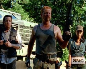 ¿Qué pasó después? Gracias a la distracción generada por Eugene, Abraham abrió fuego contra los invasores, mientras que Daryl y Rosita recuperaron sus armas y acabaron con algunos enemigos.