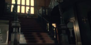 Después de que Luke sube a investigar la voz que viene del extraño tubo comunicador, es aterrorizado por una mujer en la habitación. Al bajar las escaleras vemos a la derecha dos sombras.