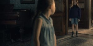 En esta escena Olivia acusa a su hija Nellie de haber pintado su nombre en la pared. Cuando Theo entra a la habitación vemos un par de manos debajo del piano.