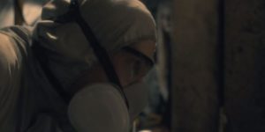 Episodio 4. Justo después de que Olivia le permite a Luke tener el sombrero, ella descubre el chal que le gusta. Mientras comparte con Hugh una visión de esa habitación, en el fondo, frente a la ventana, volvemos a ver al fantasma de cabello largo.