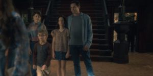 Cuando la familia Crain le está diciendo adiós a Olivia, que irá a pasar unos días fuera de la casa después de su extraño comportamiento, vemos un fantasma saliendo del cuarto de las estatuas.