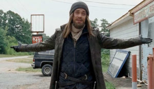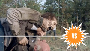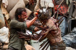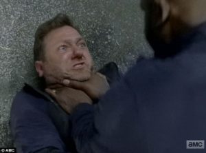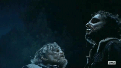 91 Carl amenazando y matando a Salvadores al filtrarse en El Santuario en la séptima temporada.
