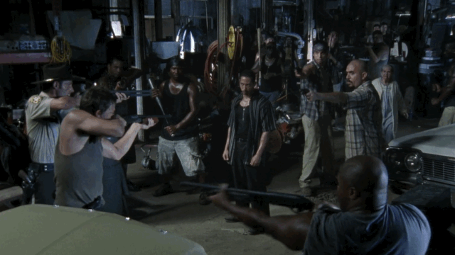 28 El enfrentamiento contra los prisioneros restantes de la prisión a comienzos de la tercera temporada.