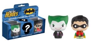Así podemos ver dos tipos de kits (cada presentación de Pint Size Heroes trae tres figuras: dos visibles y un Funko misterioso). El primero es del Joker y Robin, mientras que el segundo es de Gatúbela y Batichica.