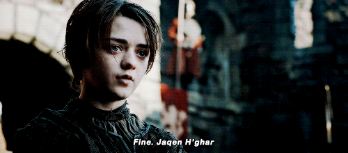1 A regañadientes accede ir a King's Landing ya que ella es todo lo contrario a su hermana Sansa. Recordemos que fue el momento en el que Jon le regaló a aguja. 🙂
