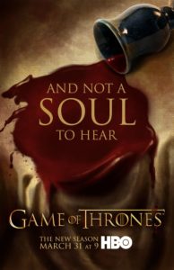 Si bien la imagen está buena porque nos hace acordar a la muerte de Joffrey y, eventualmente, también se relaciona con el devastado capítulo de La Boda Roja, el póster en sí es demasiado chato y simple comparado con el resto.