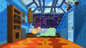 1 ¿Quién alguna vez no soñó con dormir en una habitación con techo de cristal? Nuestro querido cabeza de balón lo hizo posible. Esta maravillosa azotea incluso tenía un sofa escondido que Arnold desplegaba con un control remoto y unas escaleras que daban al exterior.