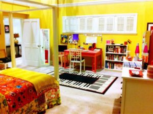 7 Lluvia de colores en el cuarto de Rachel Berry de Glee. Detalles como la alfombra con forma de piano, la madera de los muebles al tono y esas pequeñas ventanas rectangulares muestran un poco su lado artístico.