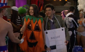 Ted está disfrazado de papeleta perforada haciendo alusión a las papeletas de votación que generaron una gran polémica en las elecciones presidenciales de Estados Unidos en las que George W. Bush se convirtió en presidente.