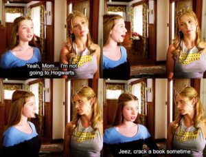 En uno de los episodios, Buffy y su hermana Dawn le piden permiso a su madre para ir a comprar algunos elementos de brujería. Sí, como Harry en el callejón Diagón antes del inicio de clases. En aquella escena, Buffy le explica a su madre que no es algo por lo que deba preocuparse, ya que no va a ir a Howgarts.