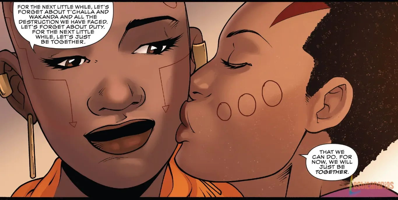 Aneka es una respetada capitana de las Dora Milaje y se toma muy en serio su papel de líder. Al ser muy hábil en varias formas de estilos de lucha, ella es la encargada de entrenar a las nuevas reclutas para servir a la familia real como guardias. No obstante, el amor es la muerte del deber, y ella termina yendo en contra del protocolo cuando se enamora de una de sus iniciadas, Ayo, a quien ya conocimos en Black Panther y TFTWS.