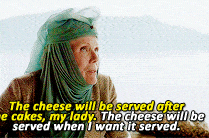 El queso será servido luego de la torta, mi señora. El queso será servido cuando quiera.