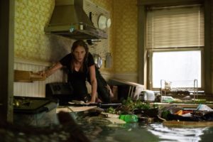 Asimismo, aunque se nota la gran cantidad de trabajo que hubo en el área de efectos visuales y en el departamento de arte, los escenarios en los que se desarrolla la historia nunca dejan de verse como sets de una producción. Lo anterior es particularmente notable durante el tercer acto de Crawl, cuando la calle se inunda y los paisajes al aire libre (que seguramente fueron terminados con ayuda de una pantalla verde) se ven totalmente falsos.